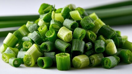 Pile of freshly chopped green chives, close-up. Great for food blogs, recipes, or culinary projects.
