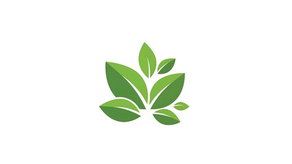 A cluster of stylized green leaves in various shades on a clean white background, conveying freshness and growth