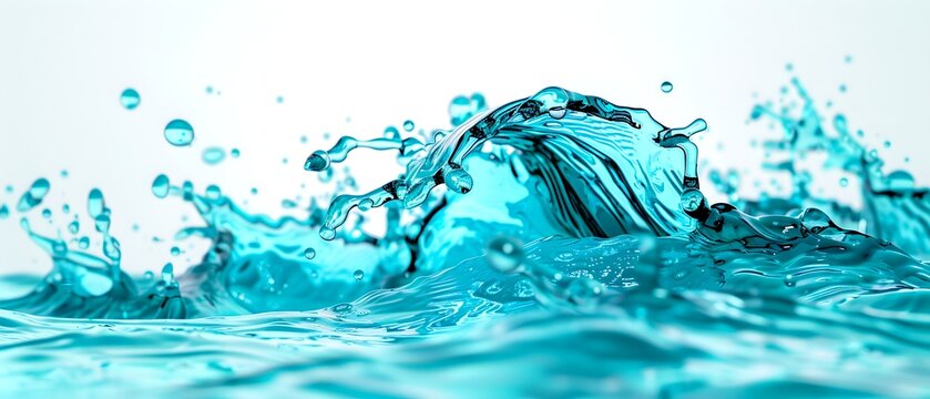 a captivating shot of water in motion, the image showcases the dynamic nature of liquid with splashes and bubbles. The clear water is a symbol of purity and freshness
