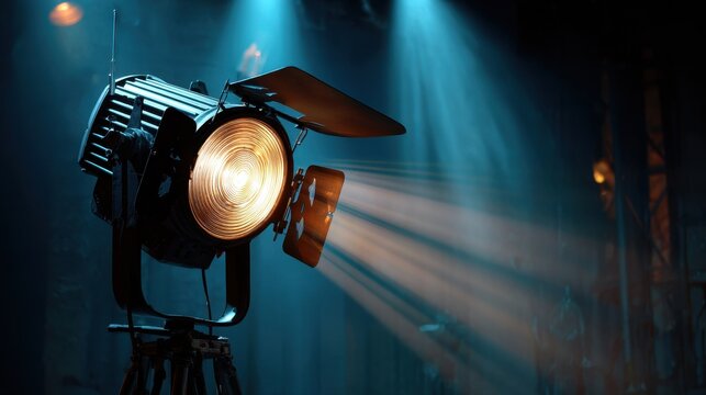 Illuminated Stage Camera Setup with Halogen Spotlight and Fresnel Lens for Photography and Videography