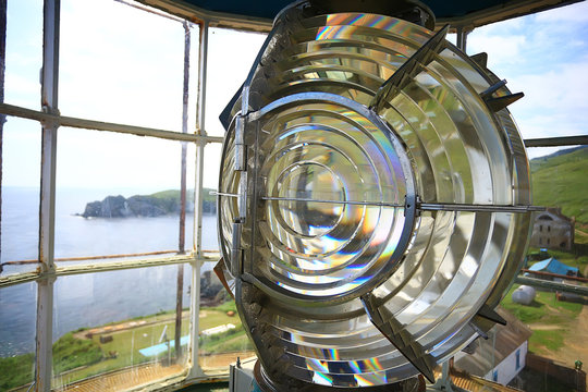 lamp of the lighthouse / glass large lamp on the sea lighthouse, large light source, industrial lighthouse