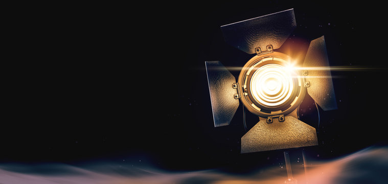 Studio light with fresnel lens and barndoors. Close-up, shallow dof.