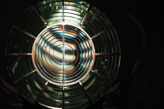 Fresnel lens close up photo. Lighthouse lamp