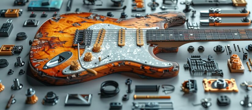 Detailed illustration of guitar fretboard with notes for all strings and positions. Useful for music education, learning chords, scales and songwriting.