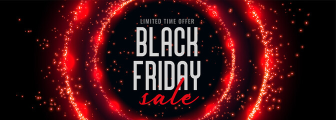 black friday sale banner with red circular sparkles