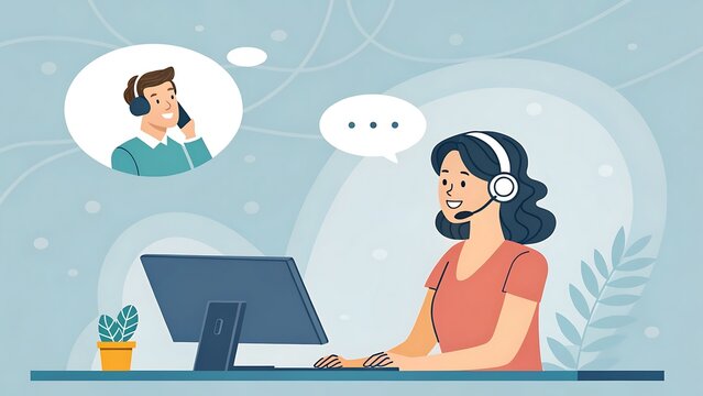 A friendly customer service representative provides support and assistance to a customer over the phone, offering solutions and building positive relationships