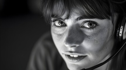 Professional in Communication: A focused customer service professional, headset on, ready to assist and support. Capturing the essence of communication, dedication, and a commitment to helping others.