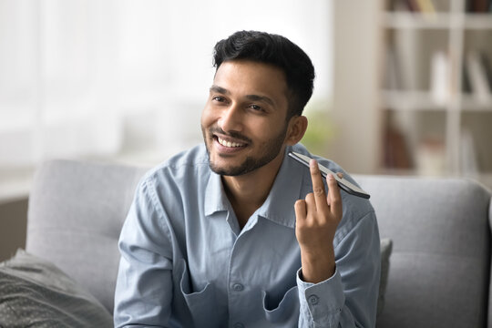 Joyful good-looking businessman in white shirt using smartphone, smiling. Fabulous young man using device. Indoors. Apartment. Daytime.