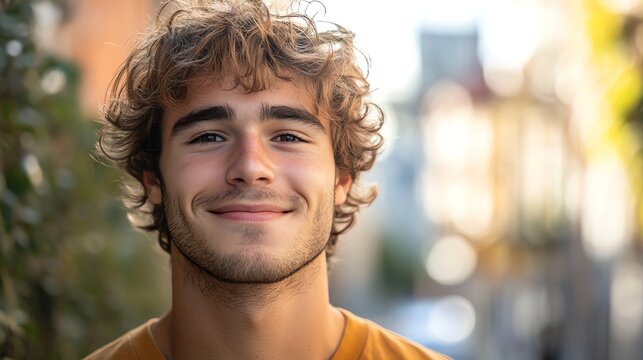 A young man with curly hair smiles at the camera, creating a friendly portrait.