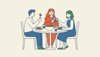 A group of friends from different genders sharing a meal celebrating friendship and camaraderie beyond stereotypes.