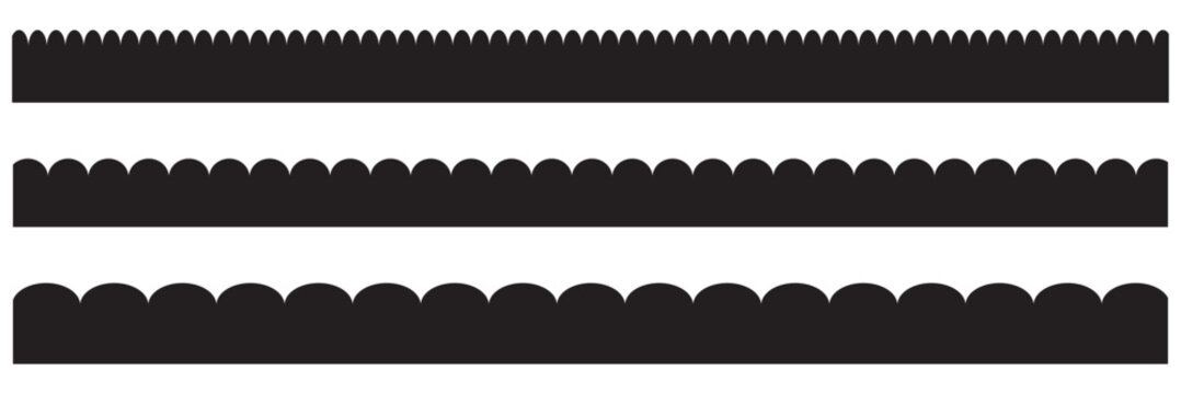 Scalloped edge seamless set, Repeating frill ornament, Simple scalloped border, Seamless line zigzag pattern design, Vector illustration,