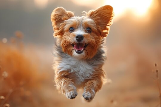 Tiny Little dog running. Happy puppy pet in the park. Generate ai