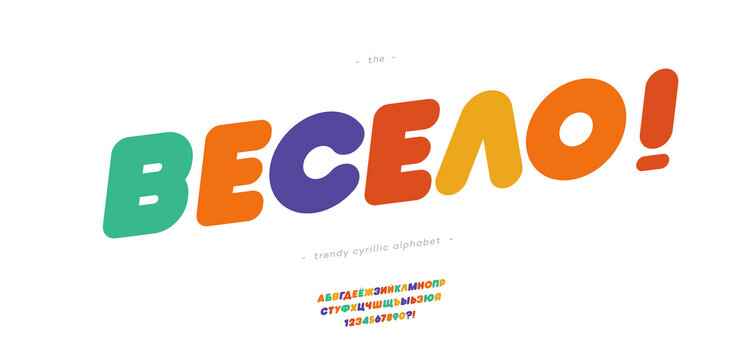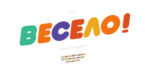Cyrillic font bold style. Title in Russian-fun. Trendy typography typeface for t shirt, book, decoration, logo, party poster, greeting card, sale banner, printing on fabric. Vector 10 eps