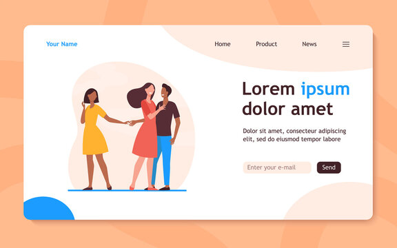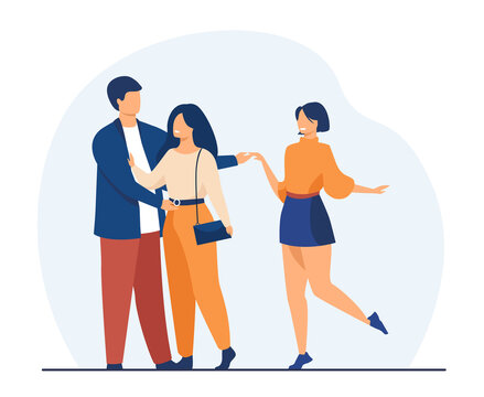 Man cheating his girlfriend with another woman. Love, infidelity, truth flat vector illustration. Relationship and adultery concept for banner, website design or landing web page