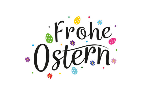 Easter Decoration, Spring Flower Calligraphy Frohe Ostern Means Happy Easter