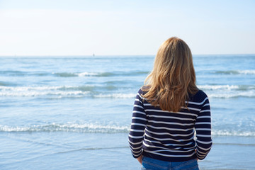 Rear view shot of woman standing on the beach