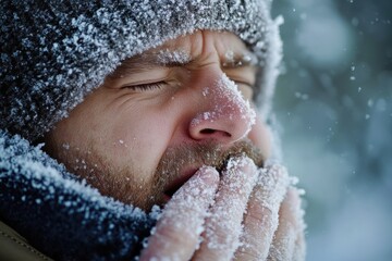 Struggling against winter frostbite while trying to stay warm in the cold outdoors