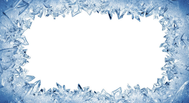 Winter frost ice crystals jagged frame on a transparent background, PNG image, PNG file, icy cold border