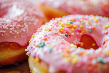 Sweet Sprinkle Glazed Donuts with Dripping Pastel Frosting/Icing - Closeup on Pop Art Pastel Colored Backdrop - Generative AI