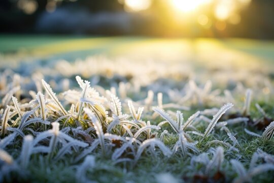 Chilly winter morning with frost-covered grass glistening in the sunlight, Video