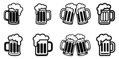 Frothy beer mugs silhouette, Beer glass silhouette icon, Beer Overload with Foam, beer mugs, each overflowing with foam head, suitable for celebrations, Vector illustration