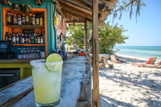 Refreshing frozen margarita by the beachside bar on a sunny summer day. Generative AI