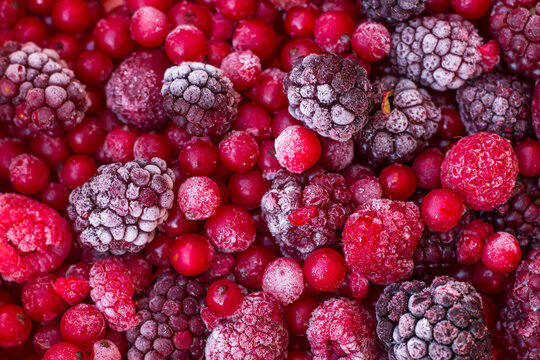 Assorted frozen berries including blueberries, raspberries, and currants