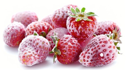 Strawberries that are frozen Berry that is filled with juice