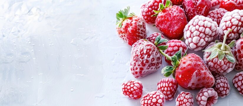 Frozen fruits blueberries blackberry raspberry red currant peach and herbs melissa