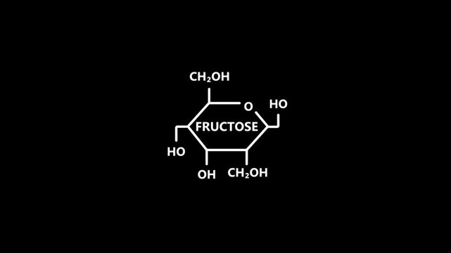 Fructose chemical structure formula diagram on black background Keywords: fructose, chemical structure, formula, molecule, carbohydrate, sugar, organic, chemistry, science, education