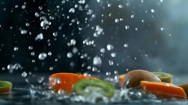 Tomato and watermelon colliding at high speed, fruit carnage