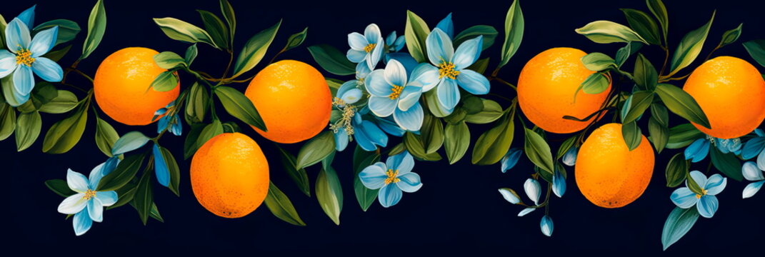 Seamless pattern of lemons with leaves and flowers in vintage style for nature-inspired designs and decorations