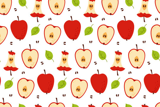 Colorful apple patterns featuring sliced and whole apples on a light background