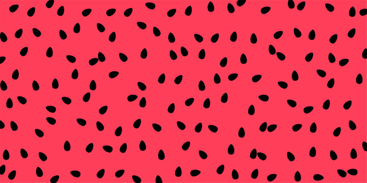 A vibrant pink background speckled with numerous small, black, seed-like shapes, creating a playful and textured pattern.