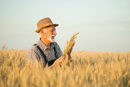 An elder farmer examines wheat stalks in his hands, showcasing the importance of farming practices and connection to nature.