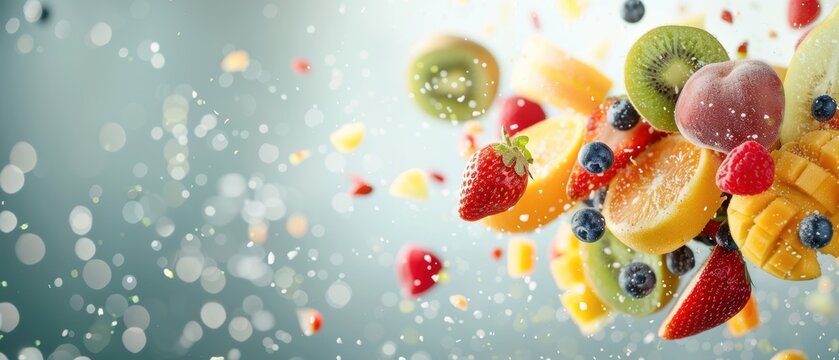 A vibrant mix of seasonal fruits in a crystal bowl, drizzled with sweet honey.