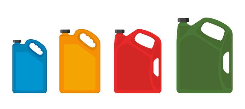 Canisters icons. Canister icons in different sizes. Fuel can badges. Vector images