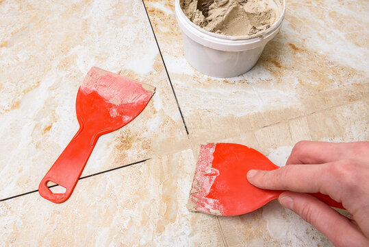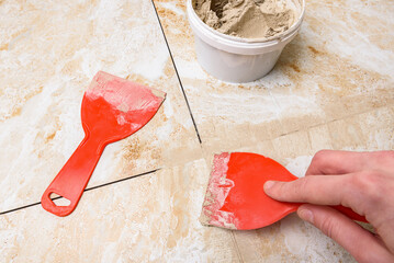 Grouting with tiling fugue. Repair in apartments and houses concept