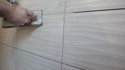 Grouting ceramic tiles. Applying fugue on ceramic tiles with a spatula.