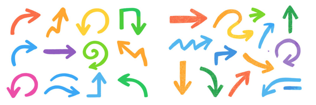 Colorful arrows and patterns arranged artistically on a bright background showcase creativity and design in a playful manner
