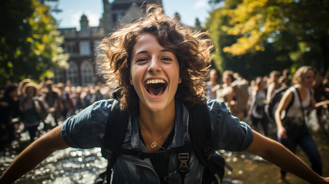 A close-up of two hands high-fiving with colorful wristbands, captured in sharp detail against a blurred carnival setting.