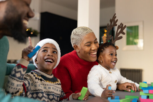 Family playing traditional games together at Christmas time