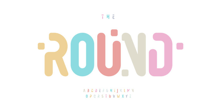 Round pale color alphabet, playful high rounded letters, funny and futuristic font for kid toy logo and headline, plump typography, modern typographic design. Vector typeset