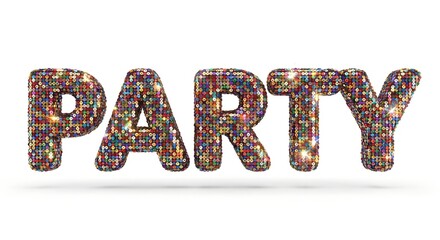 Colorful Sequin Party Text Isolated on White Background