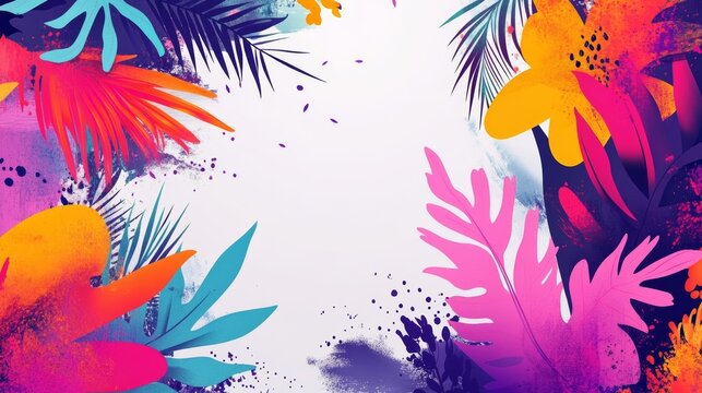 Hello Summer Colorful Leaves Vector Banner Template, Cute Playful Lettering with Tropical Party for Creative Headers, Promotion or Advertising