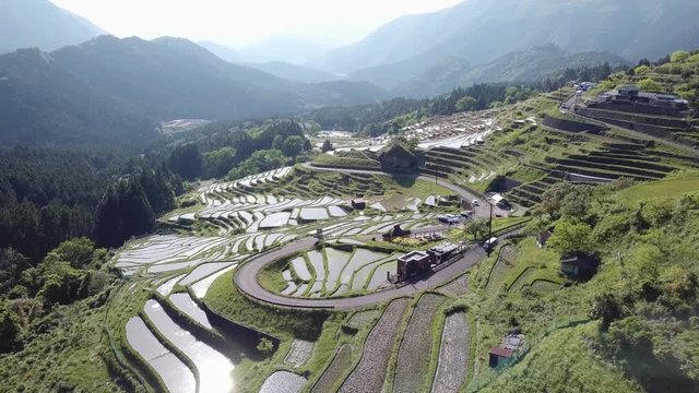 Cinematic Aerial of Rice Paddy hill