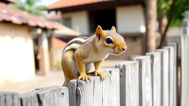 Indian Palm Squirrel on Town Fence