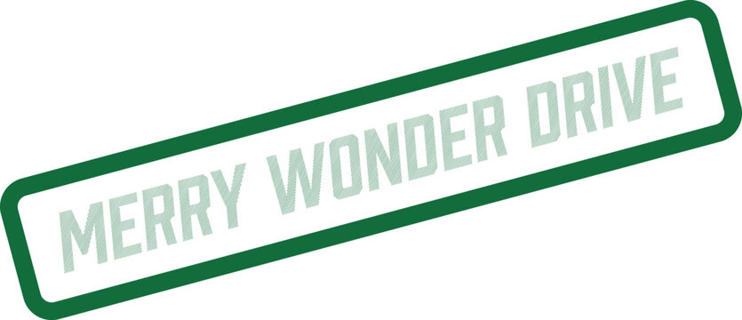 Modern vector stamp design with Merry Wonder Drive text ideal for seasonal charity fundraising campaigns