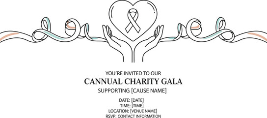 Charity Gala Invitation with Hands Holding Heart and Ribbon
