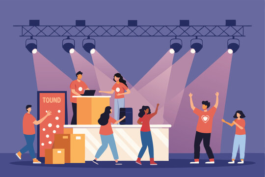 Energetic young volunteers stage a vibrant fundraising concert, showcasing musical talent to support a worthy cause.